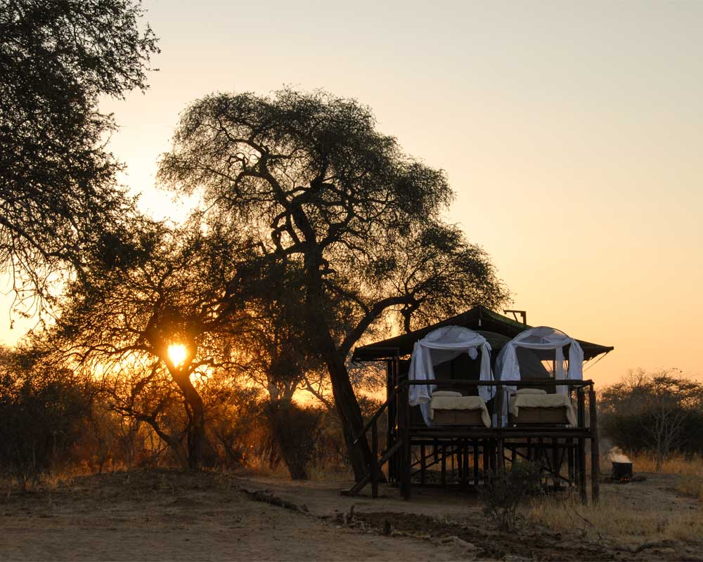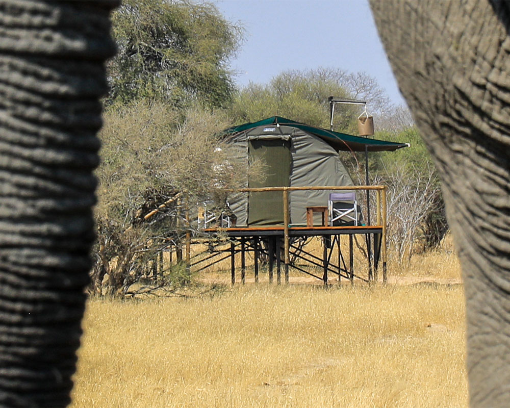 It’s winter in Hwange, the rains have gone and the safari season has started at Jozibanini – Imvelo’s remote camp in the far south west of the Park. This intimate camp, with only 5 safari tents, is perfect for those travelers seeking adventure in a true, African wilderness.The highlight at Jozi is ‘The Look-up’ hide which is a standard shipping container that has been sunken deep into the Hwange sands, so that your view is toe-height to an elephant. Imagine sitting in a comfortable, and secure hide at full moon, watching wildlife at a waterhole with a backdrop of stars in a crystal sky. An inquisitive hyena sniffs only centimeters away from your camera.